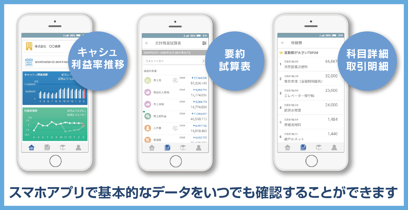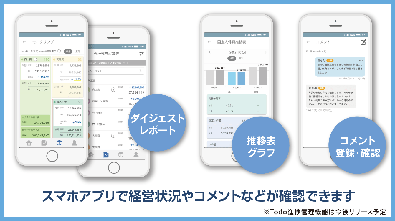 経営状況の把握からコメント記録・アクション管理までスマホで実施できます。